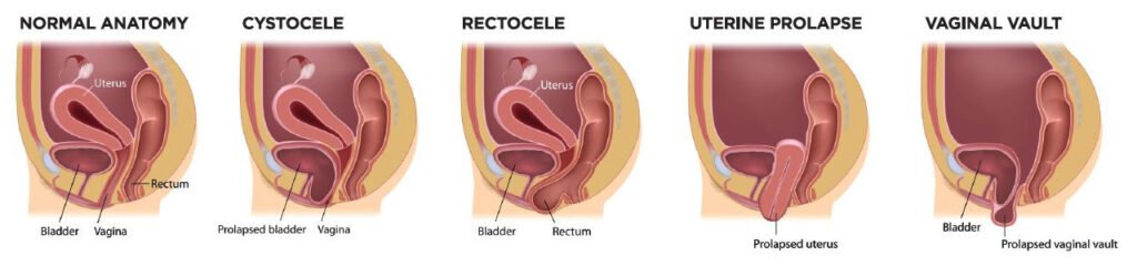 Pelvic organ prolapse occurs when one or more pelvic organs—such as the bladder, uterus, rectum, or intestines—shift downward and press into the vaginal canal.